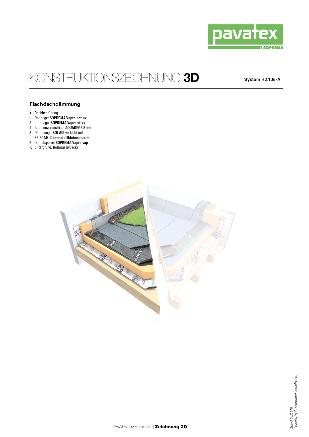 Der dargestellte Konstruktionsaufbau ist eine Hilfestellung und ersetzt nicht die individuelle Detailplanung. In der Eigenverantwortung des jeweiligen Planers liegt die Prüfung dieses Konstruktionsvorschlags auf Vollständigkeit, Anwendbarkeit und die Übereinstimmung mit dem aktuellen Stand der Technik.